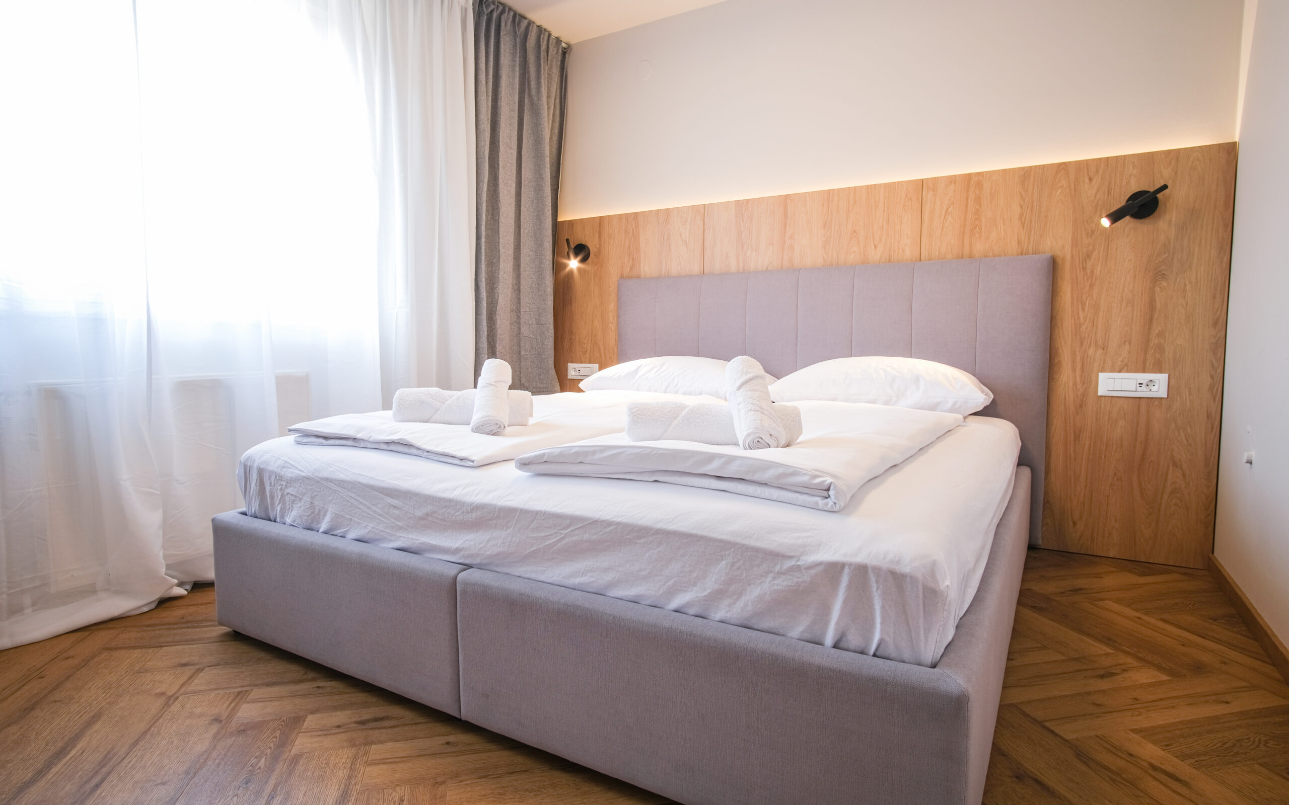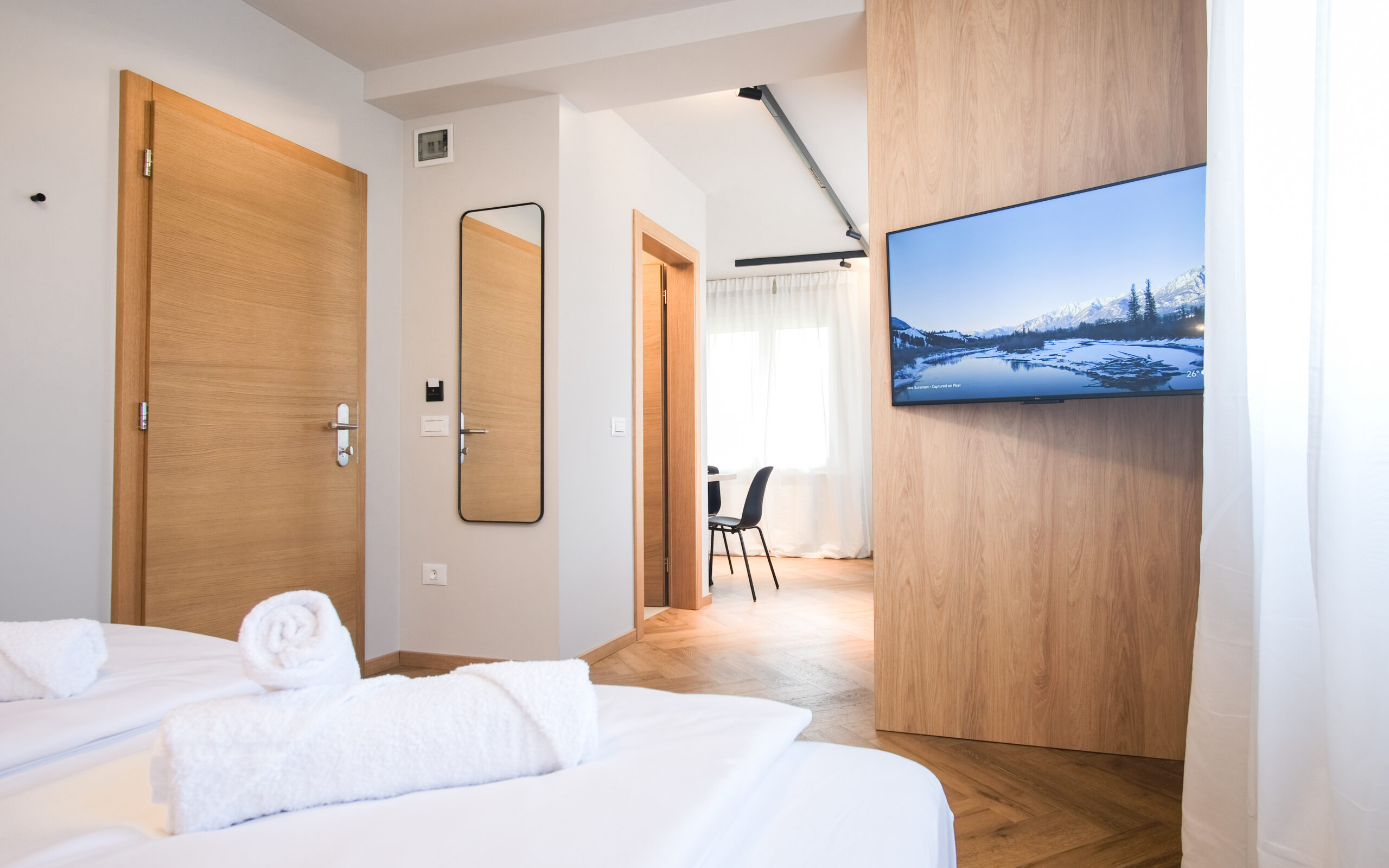 This airy and comfortable apartment is perfect for two. Large windows fill the space with natural light, creating a warm and welcoming atmosphere. It features a fully equipped kitchen and a writing desk, making it ideal for both leisure and light work. Guests can also enjoy a private balcony – a perfect spot to relax and take in the surroundings.