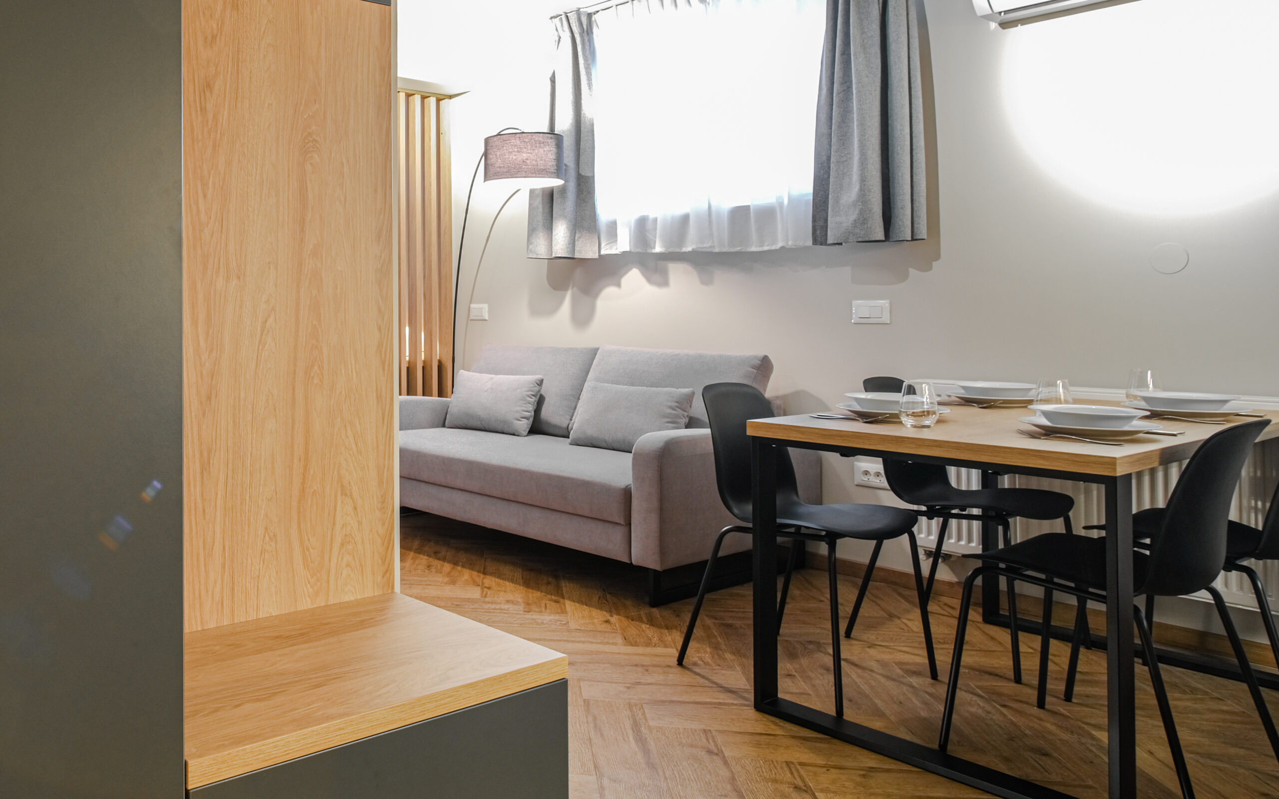 This apartment is a great choice for couples or young families, offering enough space for a comfortable stay. Although located in the basement, its south-facing windows let in plenty of natural light, creating a pleasant atmosphere. It comes with a fully equipped kitchen and a writing desk, making it suitable for both relaxing holidays and working from home.